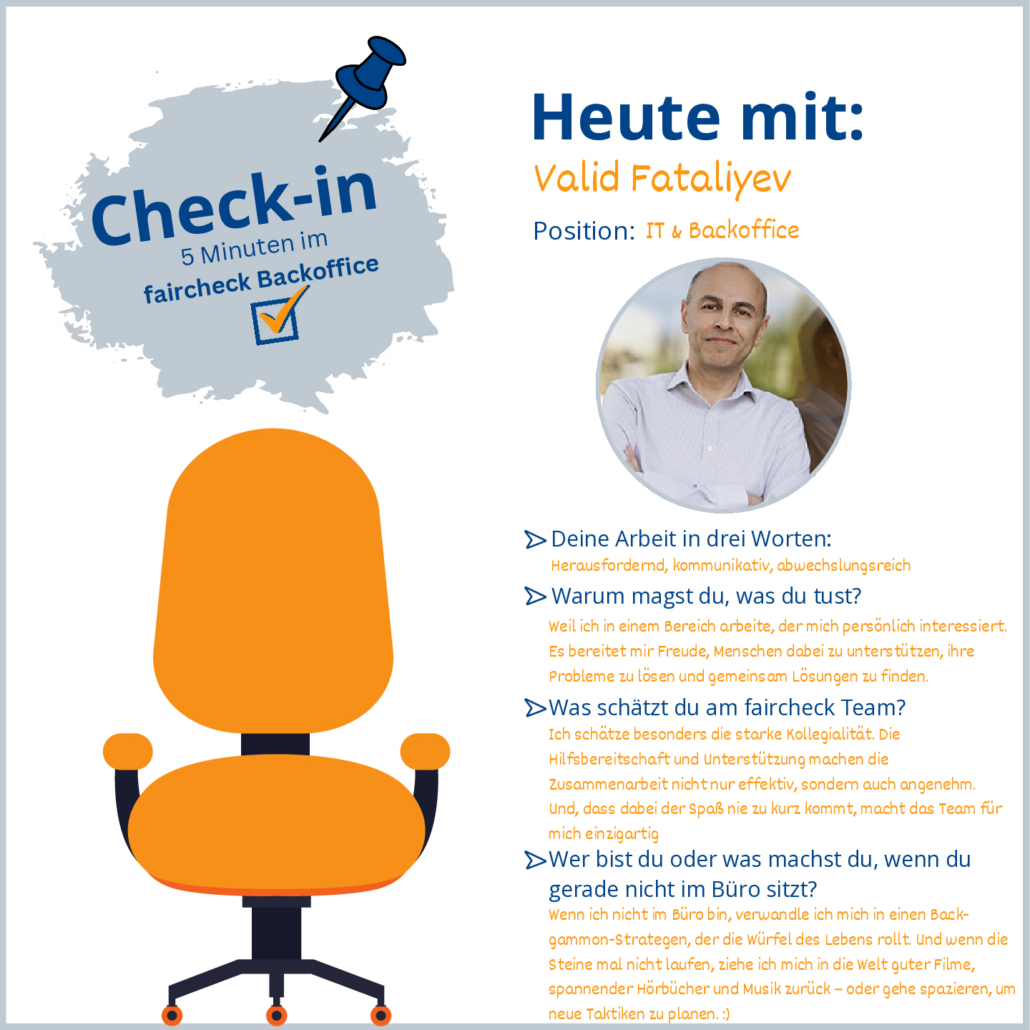 Check-in. Der faircheck 5 Minuten-Talk im Backoffice mit Valid Fataliyev