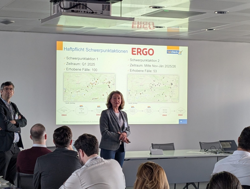 Beim Fokustag „Versicherungsbetrug“ der Versicherungsforen Leipzig GmbH brachte faircheck diese Expertise aktiv ein. Gemeinsam mit der ERGO Versicherung präsentierten Geschäftsführerin Eva Kasper und zwei faircheck Schadenexperten, Robert Goliasch und Bernhard Schobegger, den Best‑Practice‑Beitrag „War es wirklich die Katze?“.